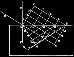 nun die Stelle A längs der OB gleichen und parallelen Geraden A B in G angelangt