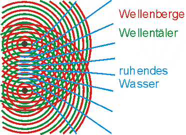 entsteht ein größerer Wellenberg. Wo zwei Wellentäler aufeinandertreffen,